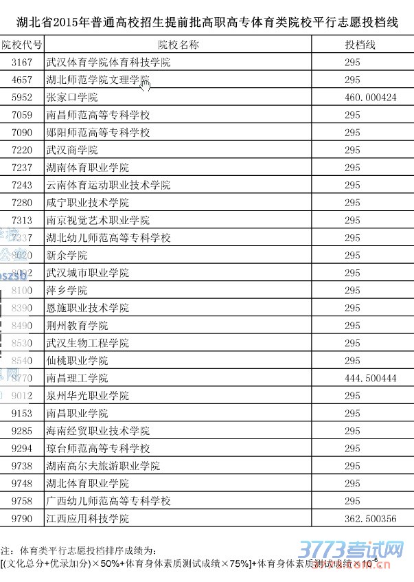 [图文]2015湖北高考提前批大专体育类院校投档分数线