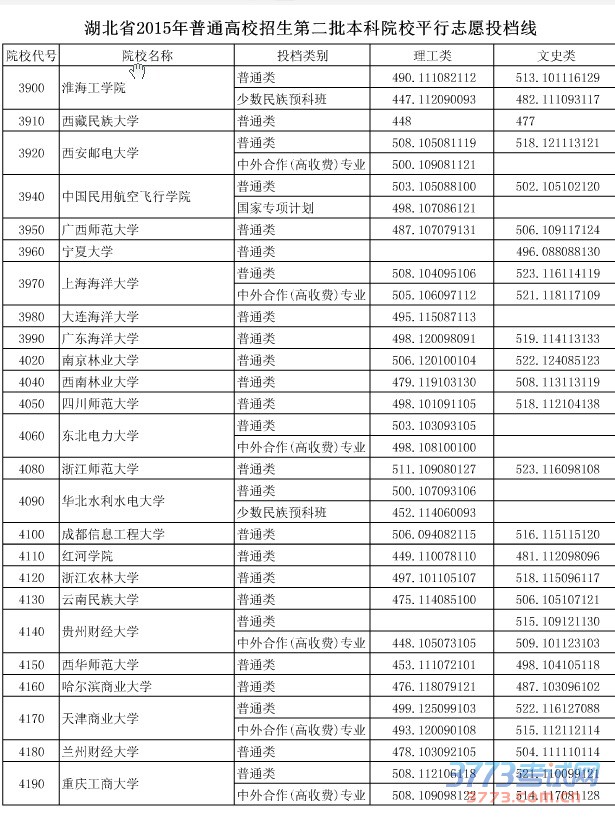 [组图]2015湖北高考二本院校投档分数线(文理)