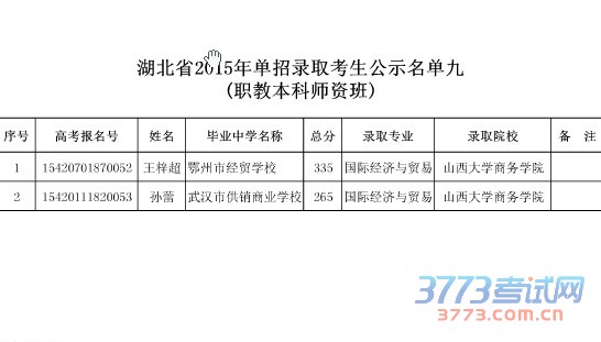 [图文]湖北省2015年单招录取考生公示名单(职教本科师资班)