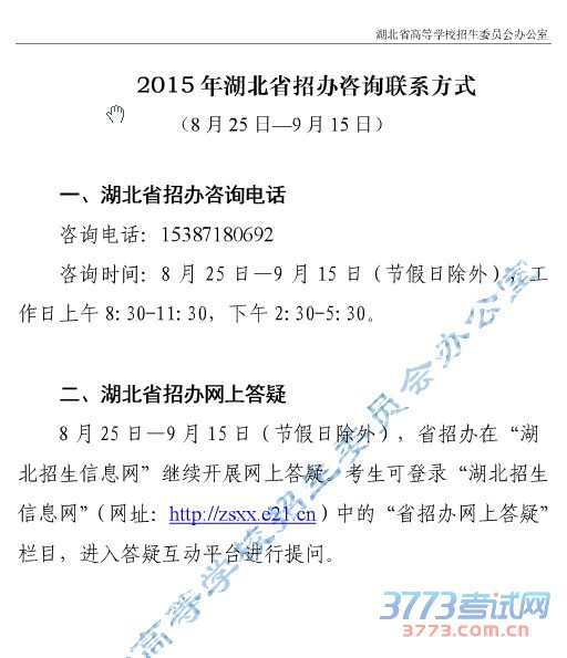[图文]2015湖北省招办咨询联系方式(8月25日-9月15日)