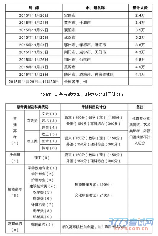 2016年湖北省普通高考继续实行网上报名(网址:www.hbea.edu.cn或www.hbee.edu.cn),网上报名按科类分两个时段进行。第一时段:2015年11月16日至18日,普通高考艺术类考生网上报名;第二时段:2015年11月20日至30日,普通高考文、理、体育类和技能高考、高职单招考生网上报名。此外不接受任何情况的补报名。