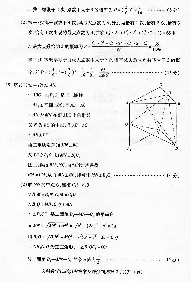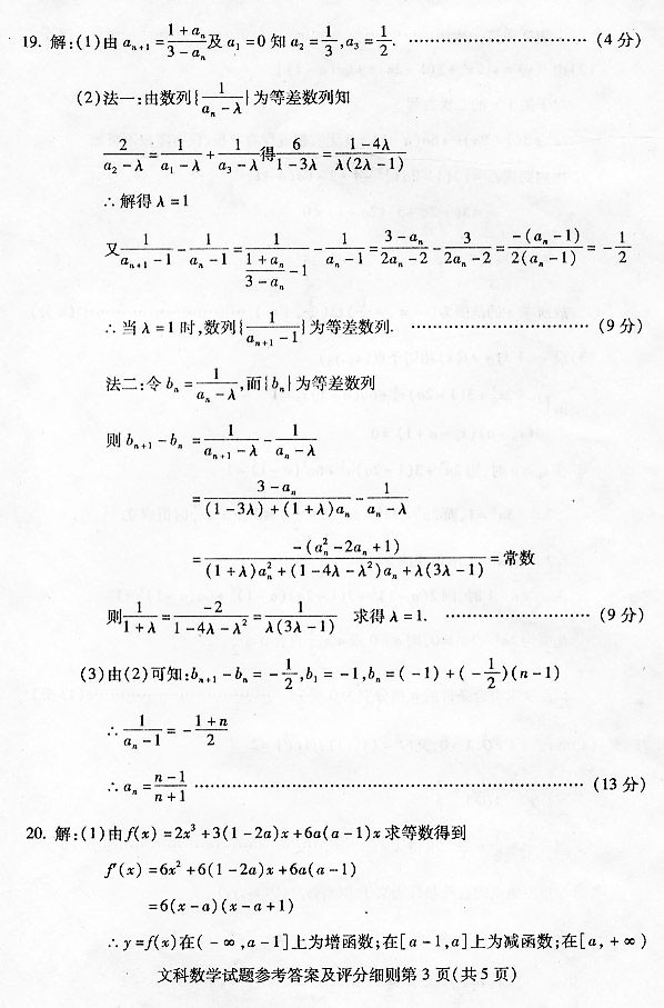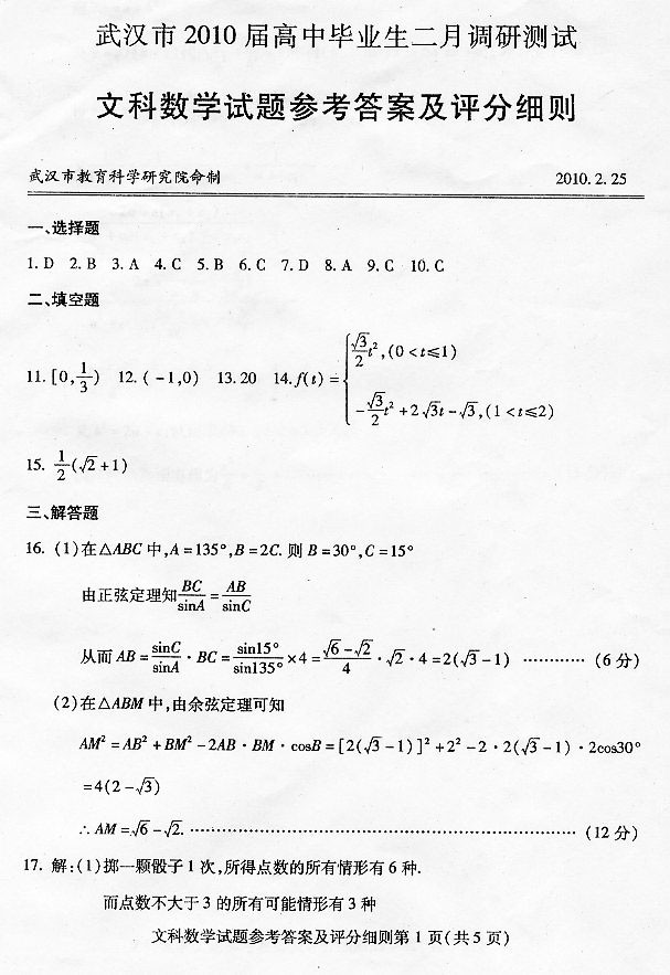 [组图]2010年武汉市高三二月调考文科数学试题答案