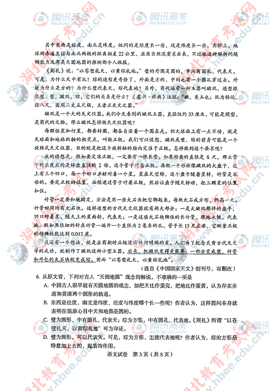3773考试网2016高考湖北高考正文