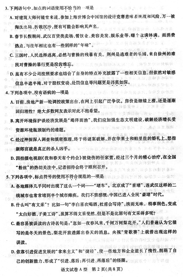 [组图]2011湖北武汉四月调考语文试题及答案(a卷)