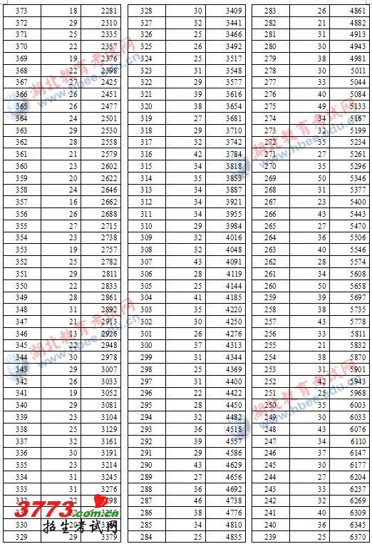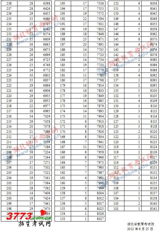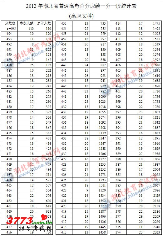 [组图]2012年湖北省高考一分一段统计表(高职文科)