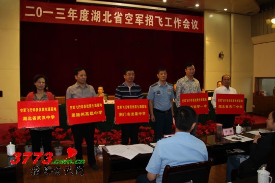 会议就2012年度湖北省空军招飞工作进行了总结回顾,部署了2013年湖北省空军招飞工作;空军招飞局李洪春研究员为被评为“空军飞行学员优质生源基地”的湖北省武汉中学、湖北省天门中学、荆门龙泉中学、湖北省云梦一中和恩施州高级中学等5所学校举行了授牌仪式;对2012年度湖北空军招飞先进单位和个人进行了表彰、授奖,组织了经验交流。