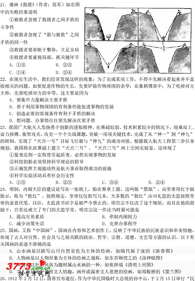[组图]2013湖北高考省重点高中高三文综模拟试题答案