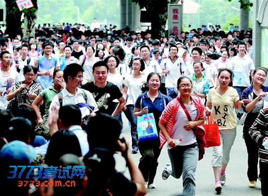 图为:2012高考第二天中午,武汉市十五中考点学生开心地走出考场 资料图片