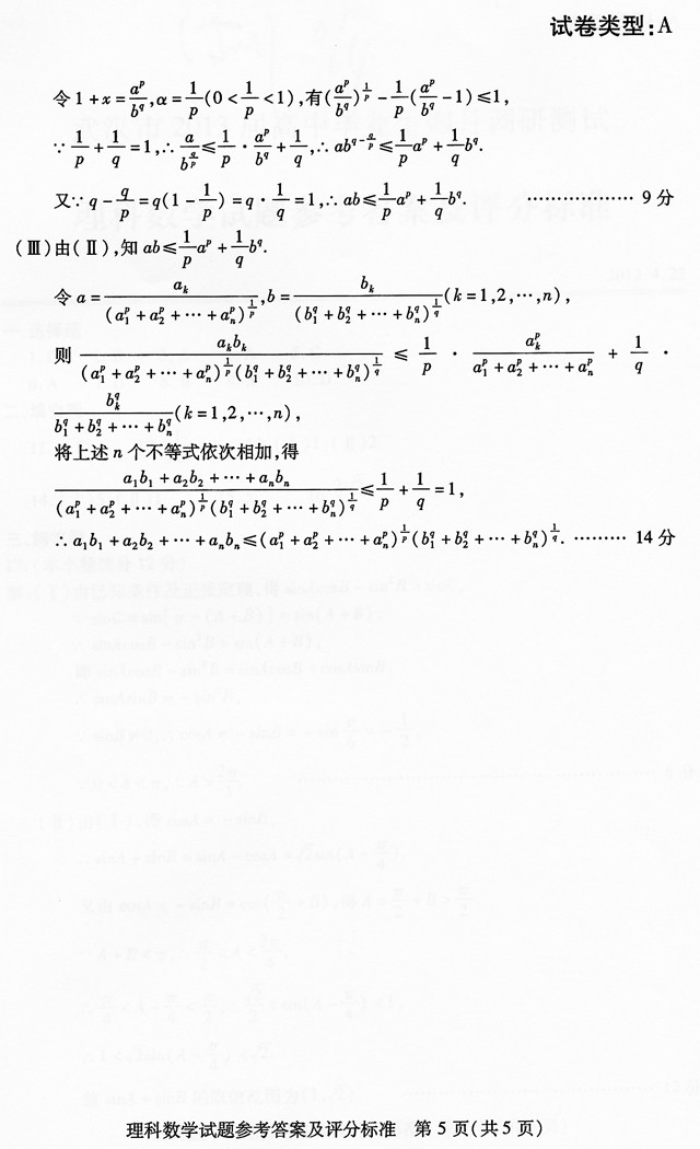 [组图]2013武汉高三四月调考理科数学试题答案(A卷)