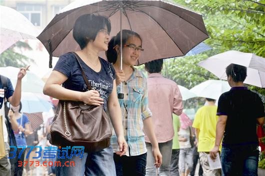 图为:昨日下午,武钢三中考点,众多家长陪孩子冒雨看考场 记者宋枕涛摄