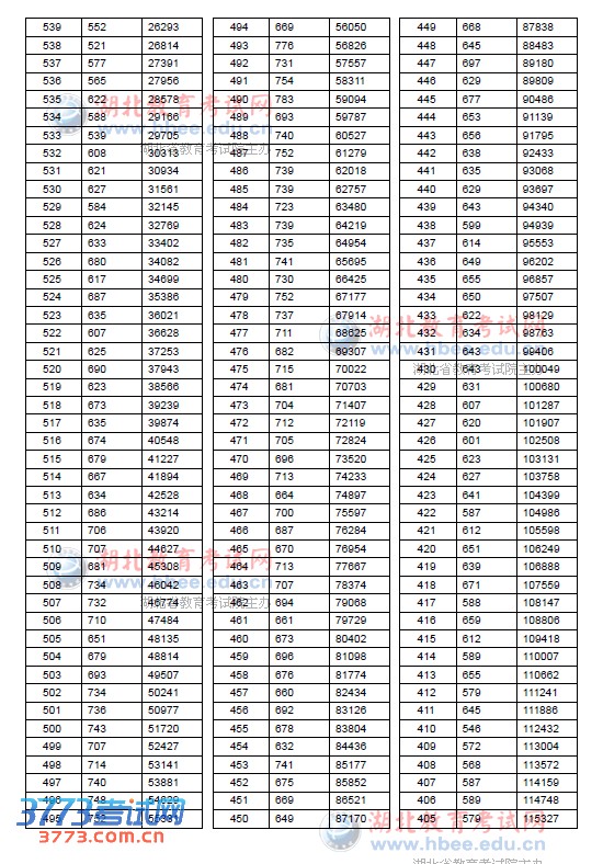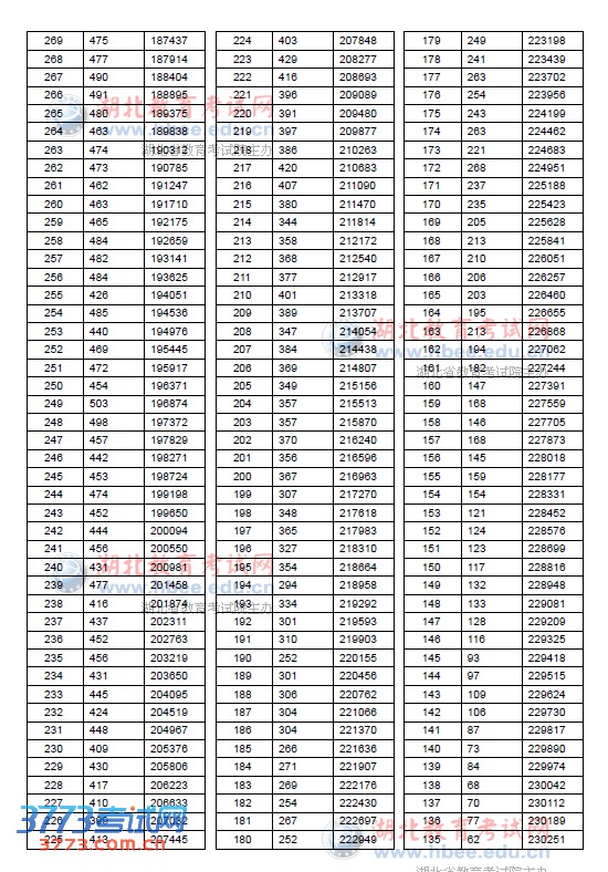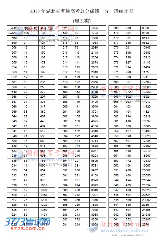 [组图]2013年湖北高考一分一段统计表(理工类)