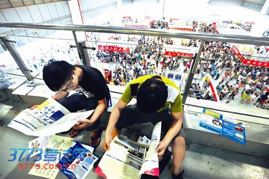 图为:找个安静的地方仔细研究 (记者刘蔚丹 实习生余露摄)