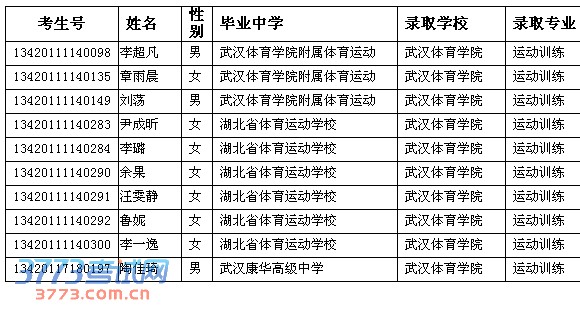 [图文]湖北省2013年武汉体育学院推荐免试单独招生录取名单
