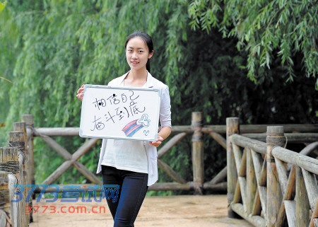 校花男神高考送祝福 扫二维码看晚报微视 (贺菲菲/辑)