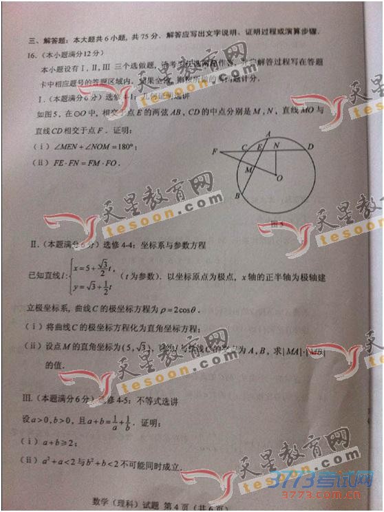[组图]2015湖南高考数学理科试题试卷