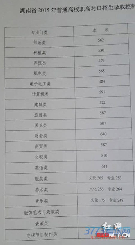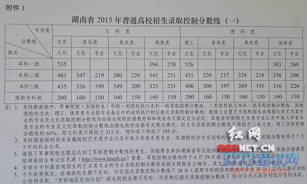 [组图]2015湖南高考分数线公布