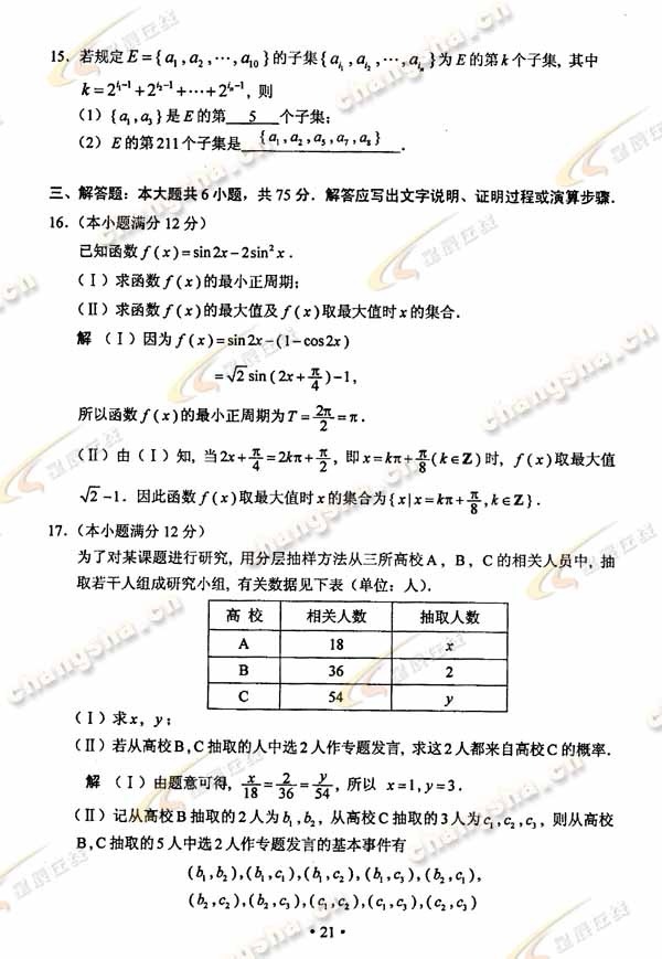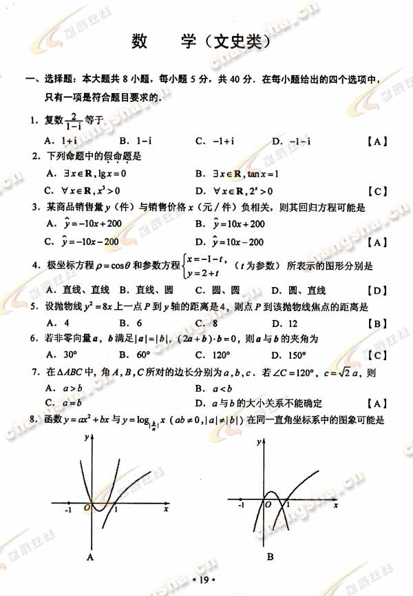 2010年湖南高考文数试题及答案