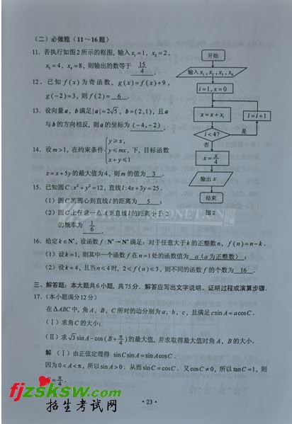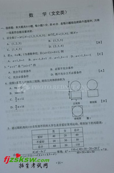 2011年湖南数学(理工农医类)高考试卷及参考答案