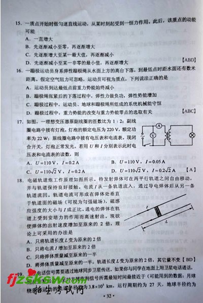 [组图]2011年湖南高考理科综合试卷及参考答案