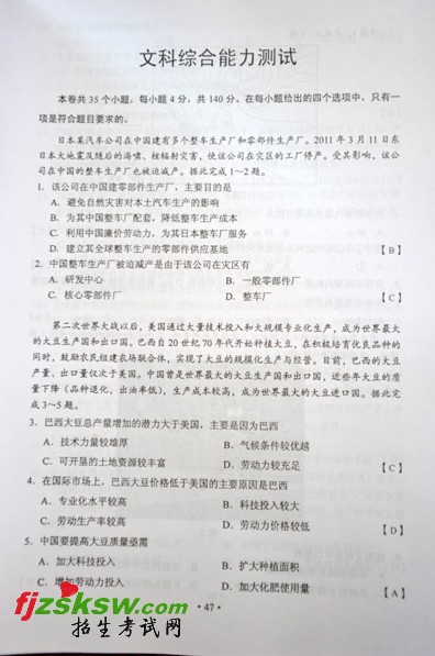 [组图]2011年湖南高考文科综合试卷及参考答案
