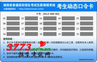 动态口令卡由省教育考试院统一印制并配发给考生本人。详细实施方案将在2012年普通高校招生工作实施办法制定后,按照《湖南省2012年普通高校招生网上填报志愿工作实施方案》执行。