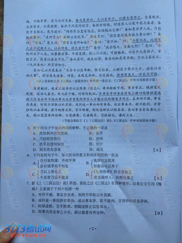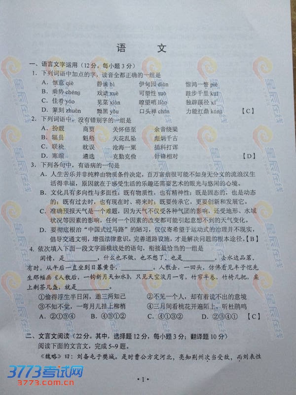 [组图]2013湖南高考语文试题及答案