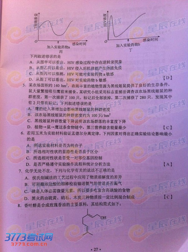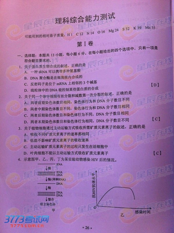 [组图]2013湖南高考理综试题及答案