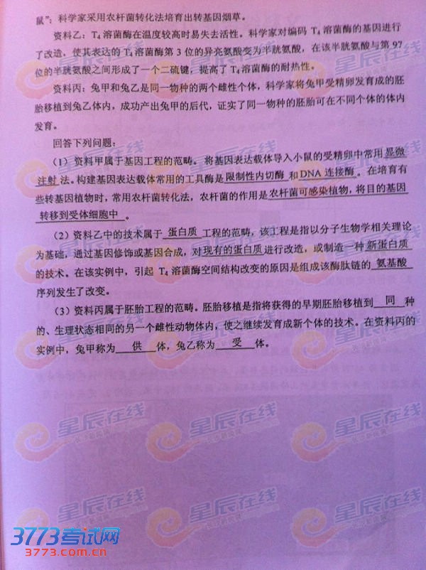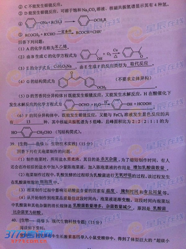 2013湖南高考理综试题及答案 2013湖南高考理科综合试题及答案
