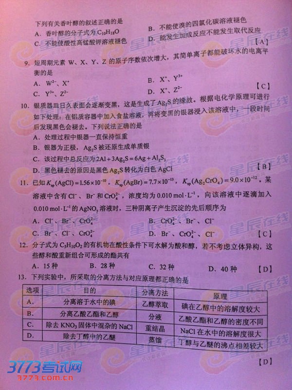 2013湖南高考理综试题及答案 2013湖南高考理科综合试题及答案