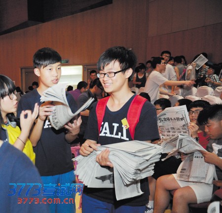 昨日下午6时40分,距离2013年高考最后一门英语考试结束还不到2小时,长沙晚报印刷精美、字体清晰的2013年高考试卷答案特刊,就第一时间出现在长沙火车站、步行街中心广场、南雅中学和各大报亭,令读者惊喜不已,不少同学迫不及待拿着本报的高考试卷答案特刊对起答案来。“毕业典礼未开始,就已经看到高考答案了,长沙晚报真是神速。”昨晚7时15分,特刊送达南雅中学,该校高三同学异口同声地感叹本报的速度之快。刘思同学一边吃饭一边拿着特刊认真对答案,“我刚考完英语,还在吃饭,就能看见答案,有点不敢相信,感谢长沙晚报!”在长沙火车站,抢购高考试卷答案特刊的以应届高考生和家长居多,短短半小时,长沙晚报数名售报员手中的报纸被抢购一空。