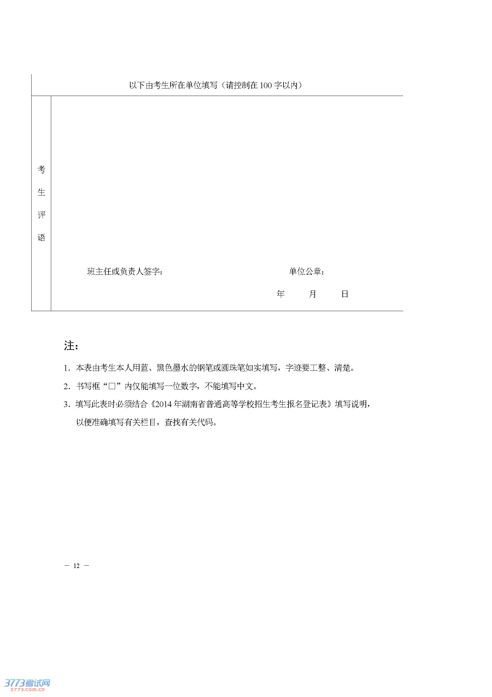 附件:1.《2014年湖南省普通高等学校招生考生报名登记表》填写(选定)说明