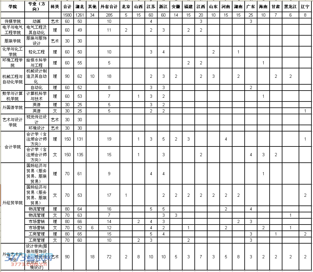 [组图]2014年武汉纺织大学外经贸学院招生计划(本科)