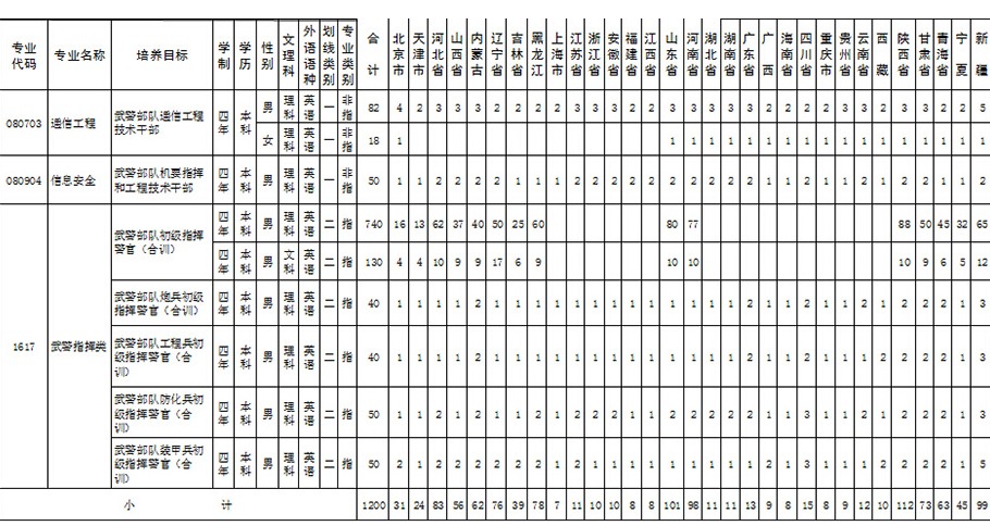 注:武警工程大学培养目标为武警部队初级指挥警官的武警指挥类专业,在陕西男生理科招生计划中,有30名从西安市八一民族中学招生。