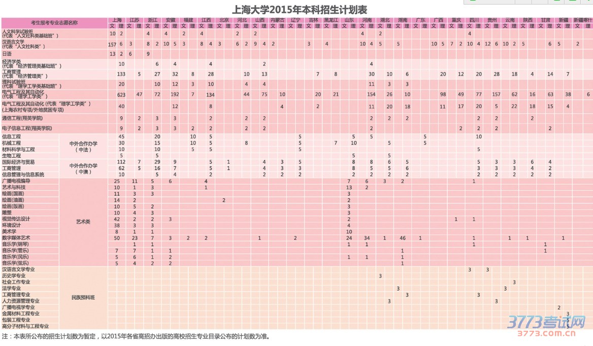 [图文]上海大学2015年本科招生计划表