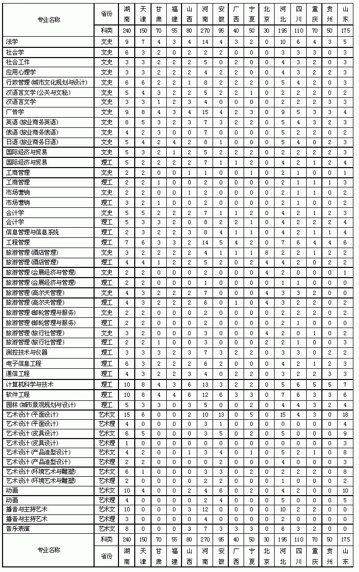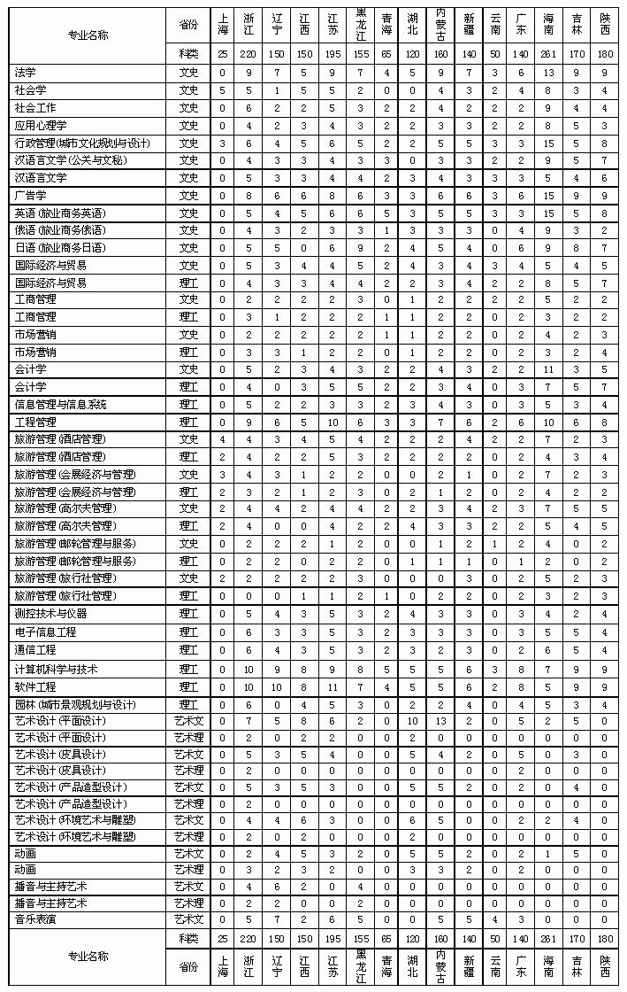 [组图]海南大学三亚学院2008年在各省市分专业招生计划