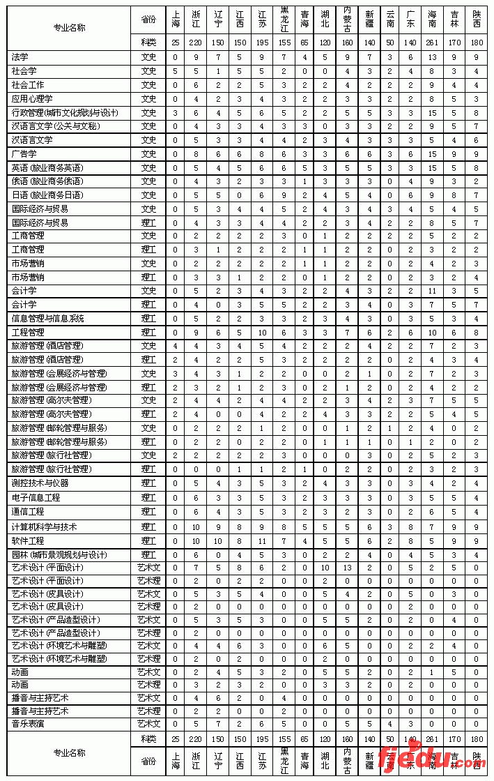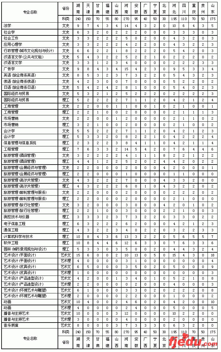 [组图]海南大学三亚学院2008年各省市本科分专业招生计划