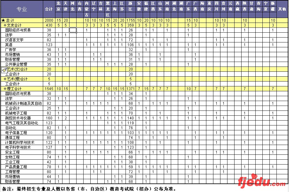 [图文]中国计量学院现代科技学院2008年分省分专业招生计划