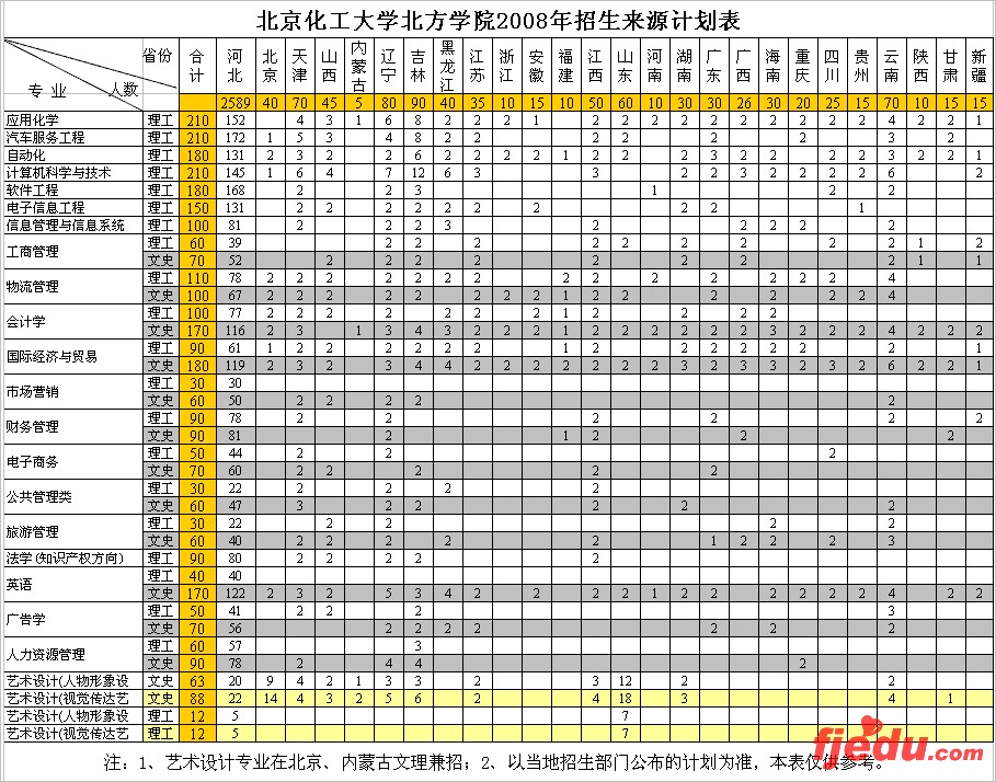 [图文]北京化工大学北方学院2008年招生计划