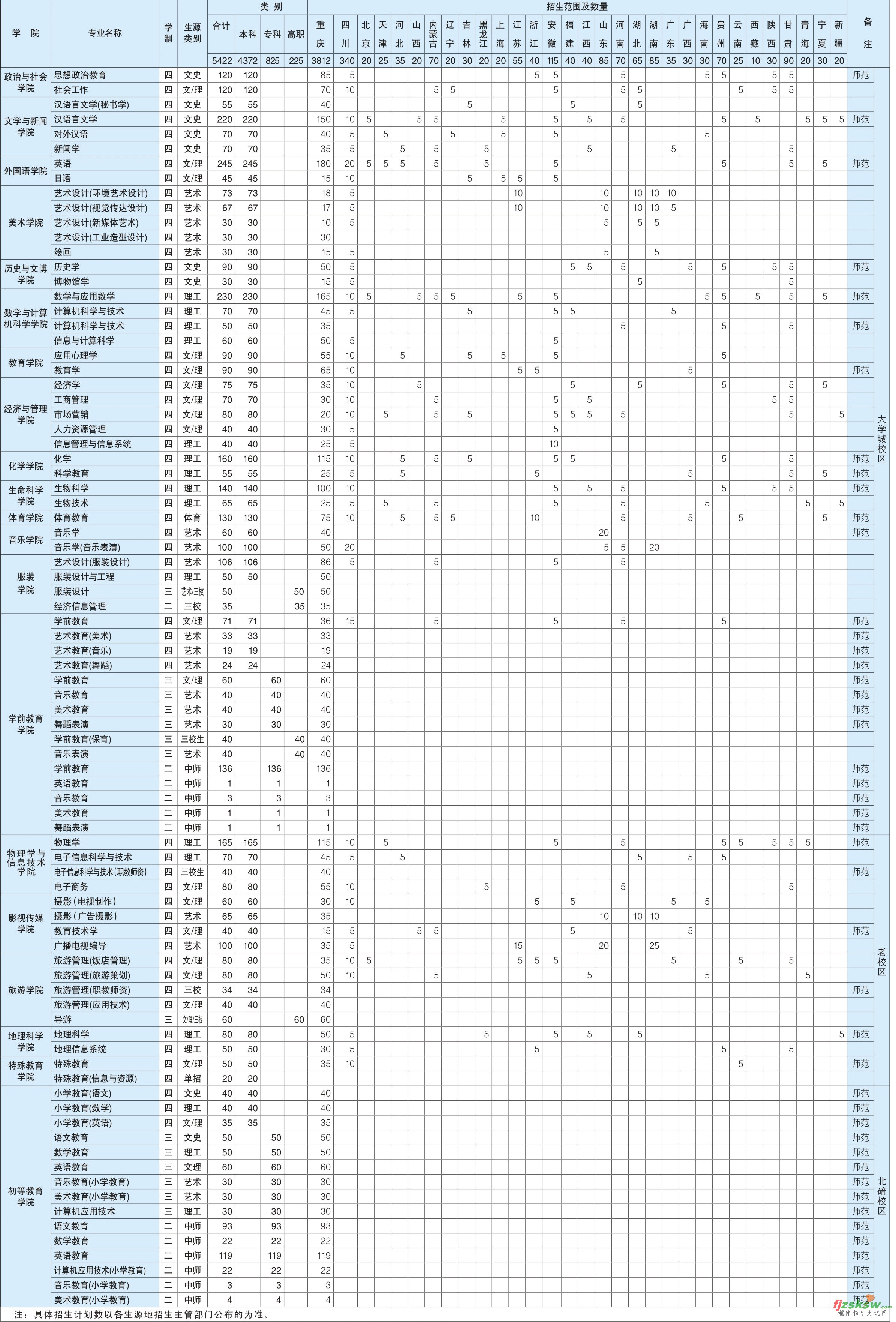 [图文]重庆师范大学2008年分省招生计划