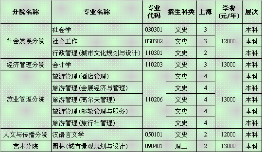 [图文]海南大学三亚学院2009年上海市分专业招生计划一览表