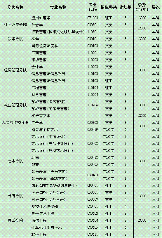 [图文]海南大学三亚学院2009年山西省分专业招生计划一览表