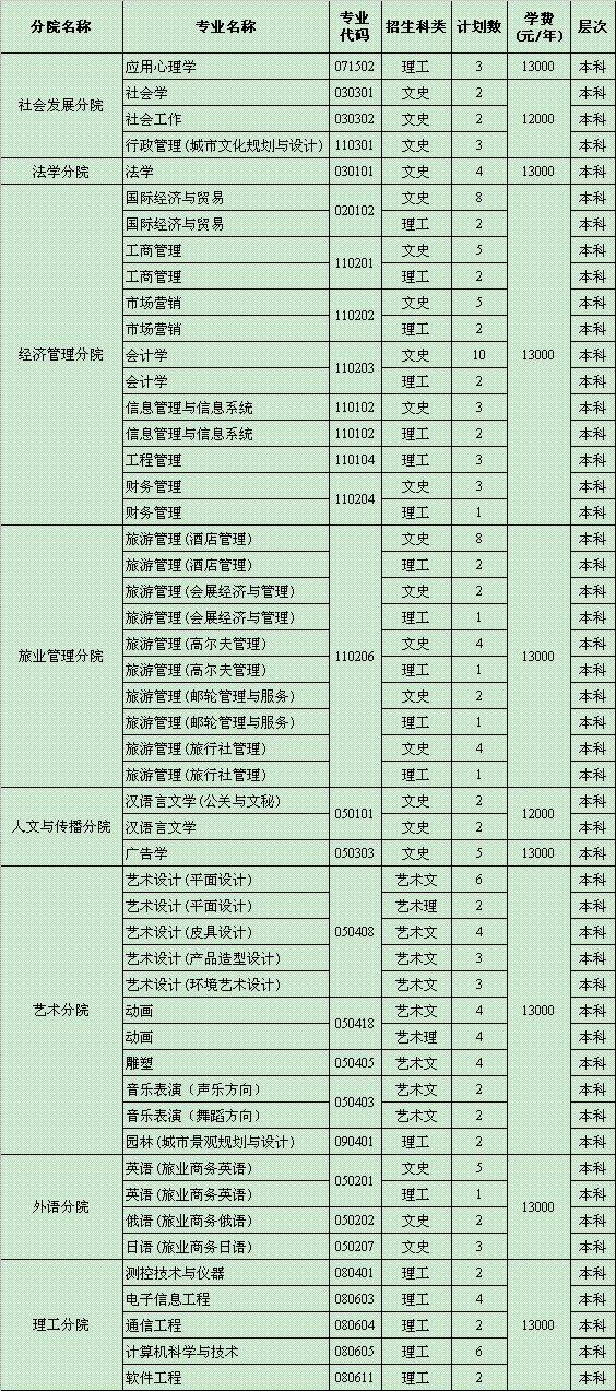 [图文]海南大学三亚学院2009年内蒙古分专业招生计划