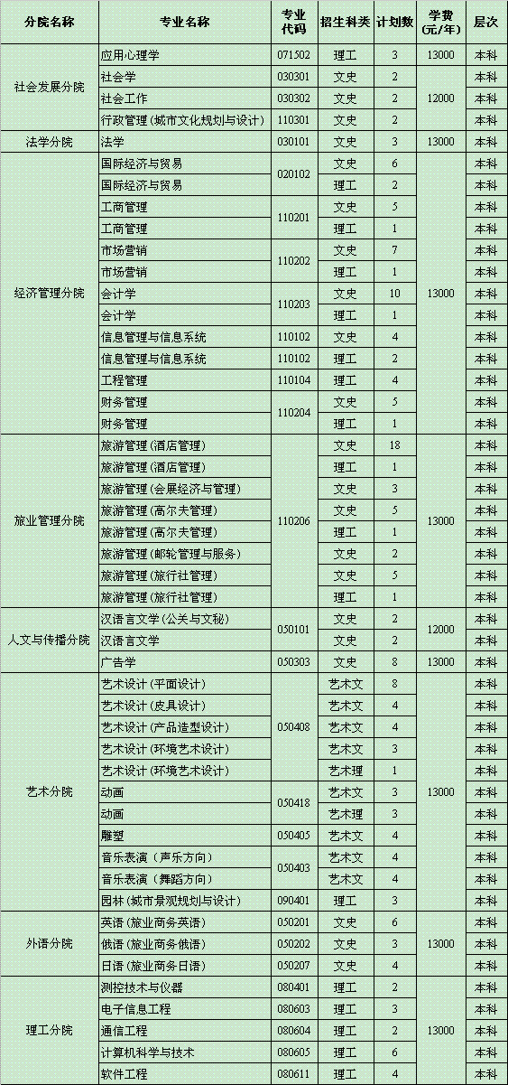 [图文]海南大学三亚学院2009年江苏省分专业招生计划