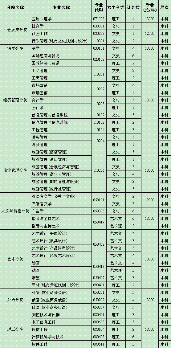 [图文]海南大学三亚学院2009年河北省分专业招生计划