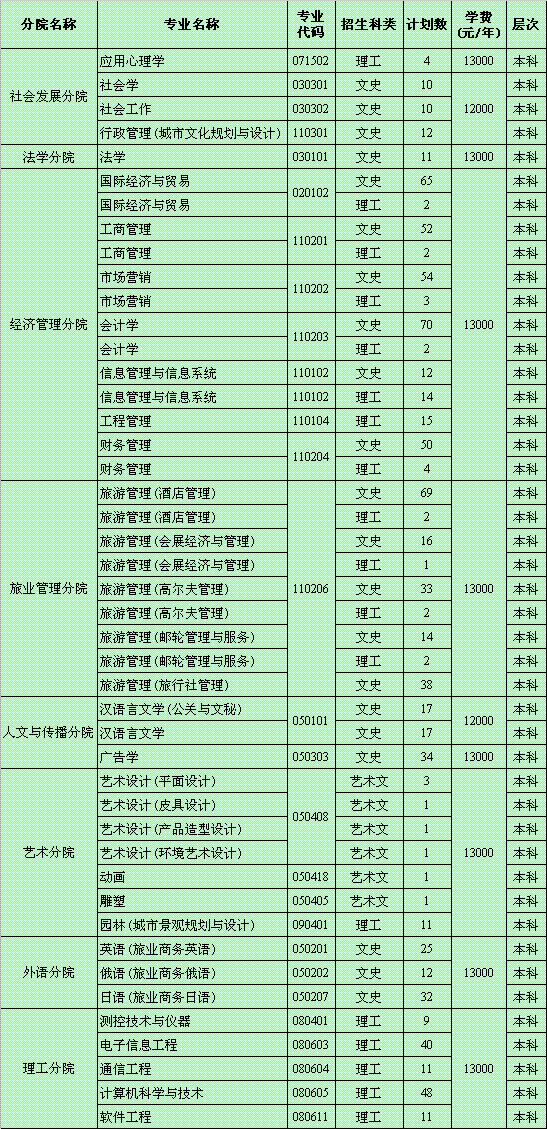 [图文]海南大学三亚学院2009年海南省分专业招生计划