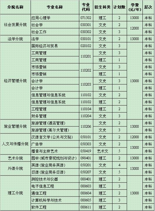 [图文]海南大学三亚学院2009年甘肃省分专业招生计划