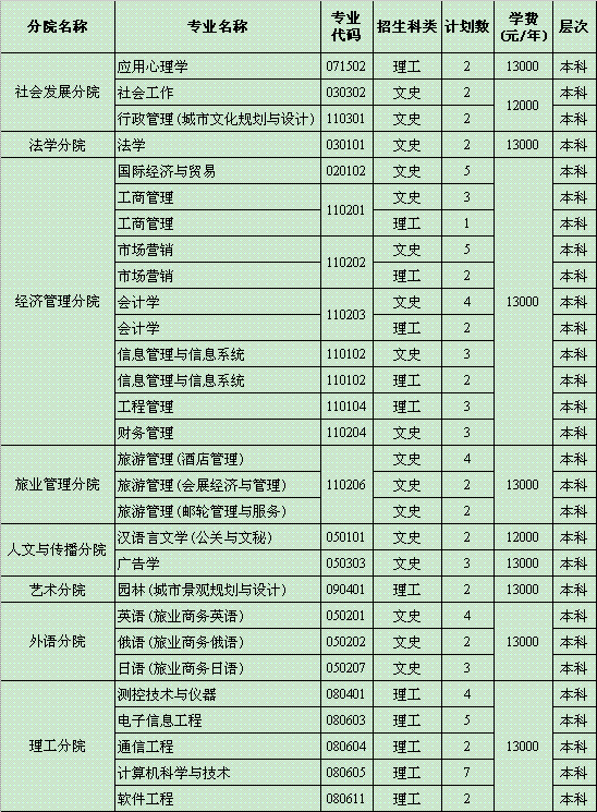 [图文]海南大学三亚学院2009年福建省分专业招生计划