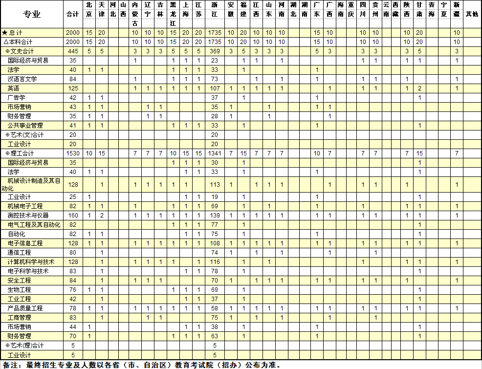 [图文]中国计量学院现代科技学院2009年分省分专业招生计划总表