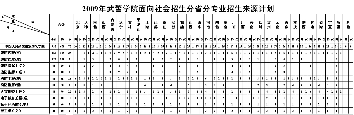 中国人民武装警察部队学院2009招生计划