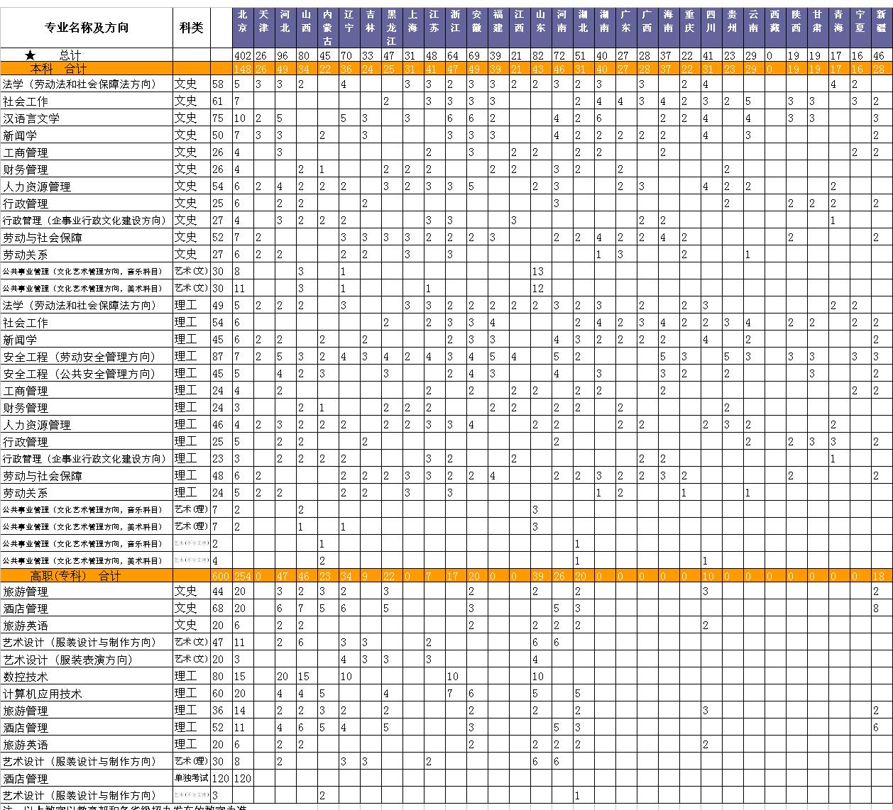 中国劳动关系学院2009年招生计划